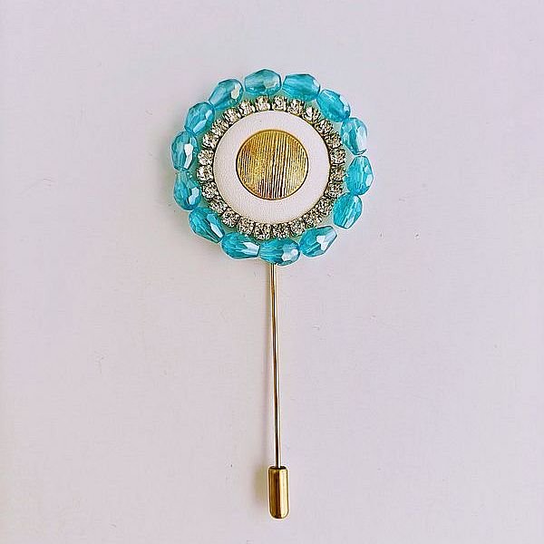 Medidas aproximadas: 2cm x 9cm. El sistema de agarre es de alfiler vertical largo.