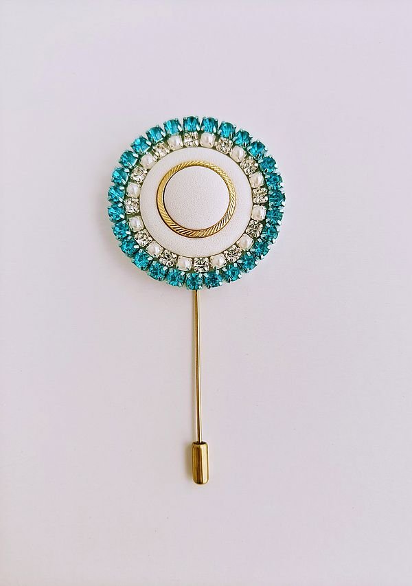 El broche tiene un sistema de alfiler vertical largo con una traba en la punta.